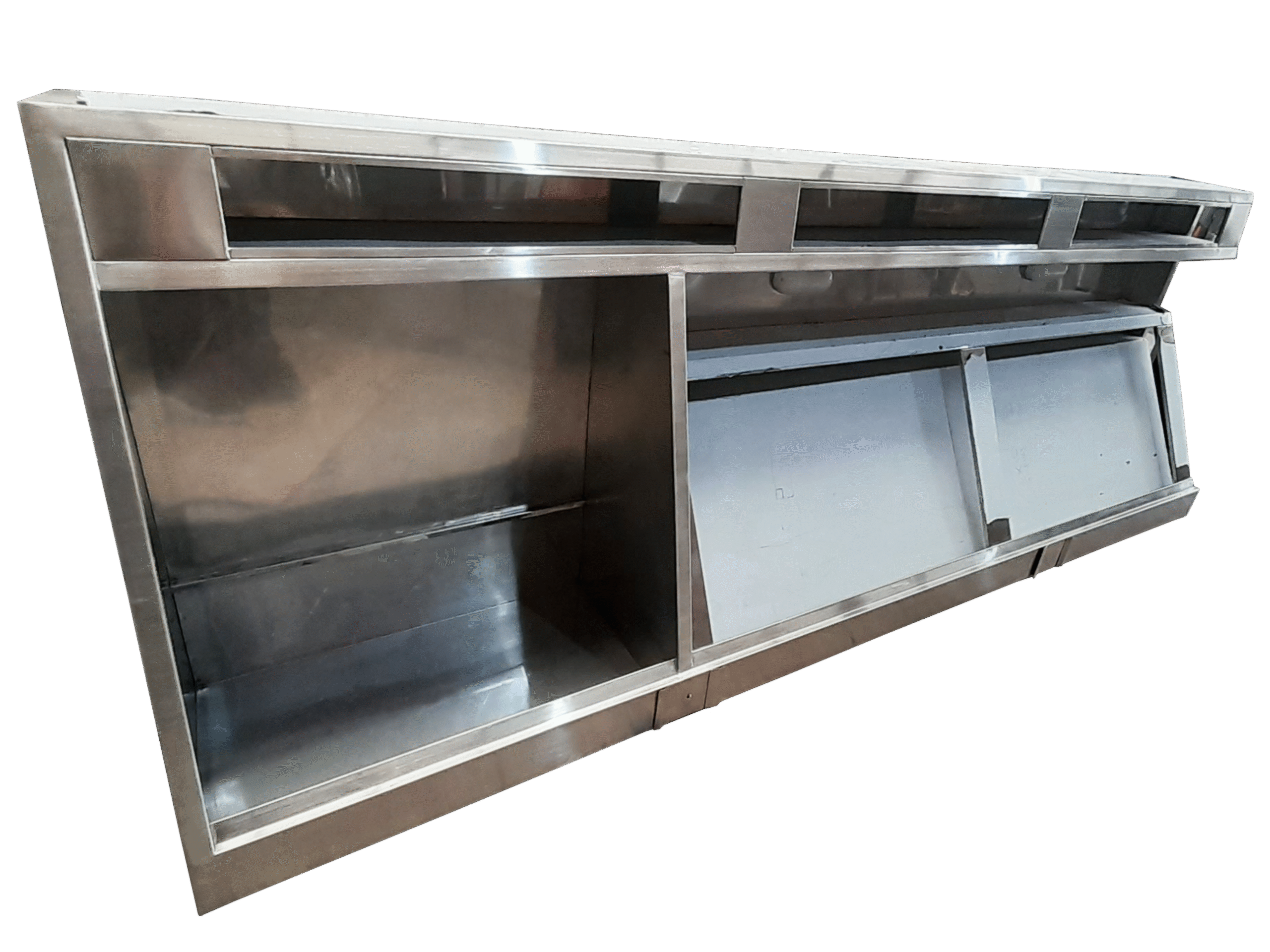 Nuestras campanas extractoras de acero inoxidable están diseñadas para garantizar un ambiente de cocina limpio, seguro y libre de humo, grasa y olores. Ideales para cocinas industriales, restaurantes y hoteles, ofrecen un sistema de extracción eficiente que mejora la calidad del aire y cumple con los más altos estándares de higiene y seguridad. Fabricadas con acero inoxidable de alta resistencia, son duraderas, fáciles de limpiar y altamente funcionales, soportando el uso intensivo sin perder eficiencia. Disponibles en distintos tamaños y modelos, se adaptan a cualquier tipo de espacio y necesidad operativa. Su diseño ergonómico y acabado profesional aportan un toque moderno y elegante a cualquier cocina, al tiempo que optimizan el rendimiento del sistema de ventilación. Mejora la seguridad y el confort de tu cocina con nuestras campanas de alto rendimiento. ¡Descubre el modelo ideal en nuestro catálogo!